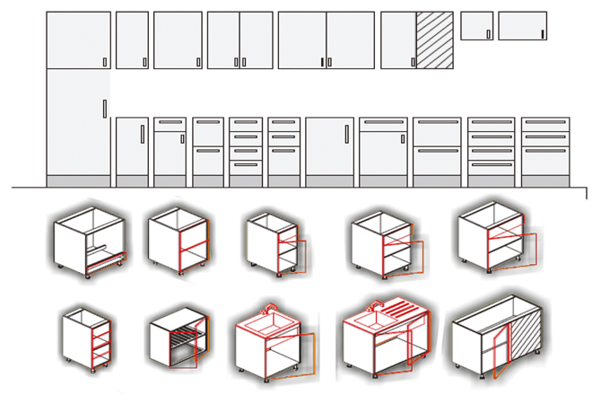 Hazır mutfak gövdeleri kullanmak, mutfağı projelendirme, kesim, bantlama, toplama, farklı noktalardan malzeme tedariki, işçilik ve montaj sürecini kısaltır, üretim süreç maliyetini ortadan kaldırır.